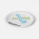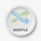 Das Symbol mit grünen und blauen Pfeilen mischen und das Wort mischen. Dieses Design wirkt auf diese Paper-Teller sehr effektiv