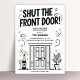 Celebrate your big move in style with this hilarious black and white housewarming invitation! Featuring bold hand-lettered typography that shouts "Shut the Front Door!", this printable invite is the perfect way to share your exciting new chapter with friends and family. The minimalist front-door illustration, bubbly champagne, and fun confetti accents give it a modern, playful feel—ideal for housewarming parties with personality.