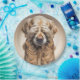 Ein goldener Retriever, der seine Augen mit Pfoten auf einem beleuchteten Hintergrund bedeckt