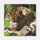 Ein Bild eines Leoparden, der sich hinter seiner Pfote versteckt. Rett unsere Wildnis.