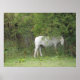 Dieses wunderschöne Bild zeigt ein wunderschönes weißes Pferd, das unter einem Baum stehend und etwas schüchtern aussieht.