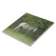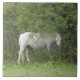 Diese phantastische Kachel zeigt ein schönes Foto eines herrlichen weißen Pferdes, das unter einem Baum stehend ist und etwas schüchtern aussieht.