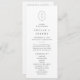 Dieses einfache, moderne, einzigartige Monogramm Hochzeitsprogramm der Shylah Collection ist perfekt für eine klassische Hochzeit. Das schlichte Schwarz-Weiß-Design zeichnet sich durch ein geometrisch ovales Monogramm mit den Initialen des Paares und ein elegantes, aber gleichzeitig boho-Ambiente aus. Geben Sie die Namen des Paares, das Datum und den Ort der Hochzeit, Dankeschön-Nachricht, Dienstorden, Hochzeitsfeier und ein optionales "in Loving Memory"-Denkmal ein.