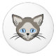 Dieser Knopf mit niedlicher Grafik zeigt das Gesicht einer siamesischen Keramik in Stärkungsfarben, dunkellichtes Licht und blass blaue Augen. Es koordiniert mit der leichteren Version, die auch verfügbar ist.