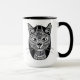 Tasse in einem verzierten, stilisierten, ethnisch-tätowierten siamesischen Katzenportrait in Schwarz-Weiß