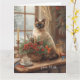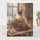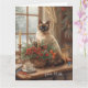 Siamese Cat arranging Flowers Winter Christmas Karte
