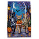 Adorable Siamese cats dressed in playful Halloween costumes carry pumpkin buckets while trick-or-treating under the moonlit sky. This festive design highlights the breed’s sleek coat, striking blue eyes, and curious personality, perfectly capturing the spooky yet fun atmosphere of Halloween night. A charming celebration for Siamese cat lovers, feline enthusiasts, and Halloween fans alike.