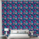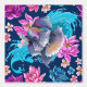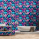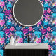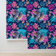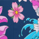 Eine Siam, die Fische im Wasser mit Blume und Kirschblüten in dunkelblauer Umgebung bekämpft
