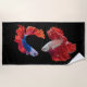 Zwei lebhafte Bettfische, die sich auf einem dunklen Hintergrund umkreist.