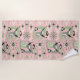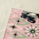 Meine originelle Vektorgrafik von abstrakten siamesischen Katzen, Würfeln, Sternexplosionen, Bumerangs, Lozenges und mehr, in Grün, Mocha, Dunkelbraun, Schwarz und Weiß auf einem strukturierten rosa Hintergrund.