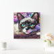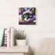 Siamese Kitty Cat Crocus Floral Lila Aquamarin Quadratische Wanduhr