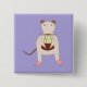 This cute Gender Reveal button feature hat graic image of a cute Siamese fancy rat with a cream colored body, pink feet and paws, brown ears, nose and tail and little red eyes. The sweet little rat is holding a tasty Birthday cake in its paws. The cake is a chocolate cake topped with pale yellow frosting and filled with red jam. There are nine candles alight on top of the cake.