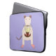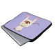 Dieser phantastische Laptop-Ärmel zeichnet sich durch eine niedliche extravagante siamesische Ratte mit einem cremefarbenen Körper, rosa Füße und Pfoten, braunen Ohren, Nase und Schwanz und kleinen roten Augen aus. Die süße kleine Ratte hält einen geschmackvollen Geburtstagskuchen in ihren Pfoten. Der Kuchen ist ein Schokoladenkuchen mit blassgelbem Zuckerguss und mit rotem Marmelade gefüllt. Auf dem Kuchen stehen neun Kerzen.