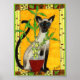 Siamesen Katze mit Bambus Pflanze Mini Folk Kunst, Poster