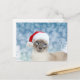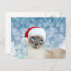 Schöne blaue Punkkatze trägt eine Weihnachtsmannmütze im Urlaubshintergrund, die den blauen Augen entspricht Katzenliebhabern Weihnachts