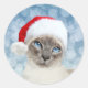 Schöne blaue Punktsiamkatze trägt eine Weihnachtsmannmütze Katzenliebhaber Weihnachtsaufkleber