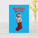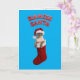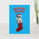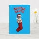 Ein siamesisches Auto, das Weihnachtsmannmütze trägt, bleibt aus einem Weihnachtsmann-Strumpf.