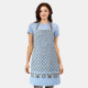 Diese niedliche Schürze zeigt ein Muster von grafischen siamesischen Katzengesichtern in einer hellen und dunklen Version mit blassblauen Augen, mit einem Akzent-Rand unten mit einer Reihe von abwechselnden Hellen und dunklen Katzen.