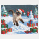 Siamische Katze läuft im Schnee mit Weihnachtsmütz Fleecedecke