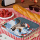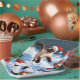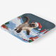 Siamische Katze läuft im Schnee mit Weihnachtsmütz Pappteller