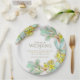 Sibbaldia procumbens Wildblume botanische Kunst Hochzeit Teller. Personalisieren Sie mit Ihrem eigenen Hochzeitsdatum und Ehepaar, um verheiratete Namen. Andere passende Hochzeitsartikel stehen zur Verfügung oder können auf Anfrage erstellt werden. © Original Aquarellmalerei und Design von Sarah Trett für www.mylittleedenweddings.com auf Zazzle.