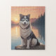 Siberian Husky Dog sitting by beautiful lake. Lots of pet and scenery designs in my stores. Add this design to other products. Add text.