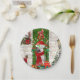 Der sibirische Husky Dog Weihnachten sitzend draußen geschmückt Zuhause mit Weihnachtskranz, Weihnachtsbaum ist eine perfekte Weihnachtsgeschenkidee für Hundefreunde.