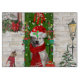 Der sibirische Husky Dog Weihnachten sitzend draußen geschmückt Zuhause mit Weihnachtskranz, Weihnachtsbaum ist eine perfekte Weihnachtsgeschenkidee für Hundefreunde.