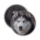 Dieses Digitalbild zeigt einen sibirischen Husky, der auf Schnee stehend ist. Das Fell glänzt mit frostigen Highlights, während sich die Winterlandschaft endlos hinter sich erstreckt. Die ausdrucksvollen Augen des Hundes erwecken die Aufmerksamkeit des Betrachters.