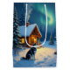 Siberian Husky Snowy Cabin Christmas Painting Mittlere Geschenktüte