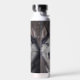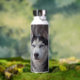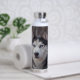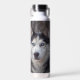 Dieses Digitalbild zeigt einen sibirischen Husky, der auf Schnee stehend ist. Das Fell glänzt mit frostigen Highlights, während sich die Winterlandschaft endlos hinter sich erstreckt. Die ausdrucksvollen Augen des Hundes erwecken die Aufmerksamkeit des Betrachters.
