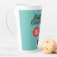 Lächelnder sibirischer Husky Hund mit rotem Ornament und fröhlichem Weihnachtstext auf aqua Hintergrund