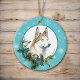 An der Vorderseite dieses Holiday-Ornaments befindet sich ein majestätisches Porträt eines sibirischen Husky-Hundes, der aus einem heiligen und immergrünen Teig aussieht. Rote Beeren und Kiefernkonen schmücken die Kiefer- und Kiefernspieße. Das Bild wird auf einem weißen Kreis gerahmt durch ein Retro-blaues Schneeflockenmuster platziert. Die Rückseite des Ornaments hat den gleichen Hintergrund und Kreis mit Ihrem benutzerdefinierten Text in blau auf einem weißen Hintergrund. Perfekt für jeden, der sein Herz an einen Husky verloren hat.