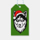 Siberischer Husky-Hund mit Weihnachtsmannmütze im Geschenkanhänger