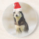 Siberischer Husky-Hund mit Weihnachtsmannmütze im Sandstein Untersetzer