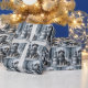Ein flauschiger sibirischer Husky mit Schal und Ohrmuffen sitzt neben einem fröhlichen Schneemann mit Hut und Schal