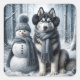 Siberischer Husky mit Schneemann Quadratischer Aufkleber