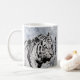 Tasse mit Schwarz-Weiß-Sibirien-Tiger auf grauweißem Marmormuster.