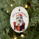 Auf der Vorderseite dieses Holiday-Ornament ist ein Bild eines bezaubernden sibirischen Husky-Welpen, der eine rot-weiße Weihnachtsmannmütze trägt und aus einer Weihnachtsfeierlichen Geschenkboxen guckt. Hinter dem Bild ist ein goldener Konfetti Sprinkle Hintergrund. Im Text steht "Joy to the World". Die Rückseite des Ornaments hat den gleichen Konfetti-Hintergrund und Textfelder, damit Sie jedes Ornament individuell gestalten können.
