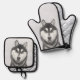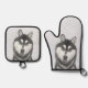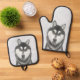 Sibirische Husky Malerei Schwarz-Weiß-Hunde Kunst Ofenhandschuh & Topflappen-Set