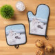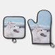Sibirische Husky-Malerei - Silber und Weiße Hundek Ofenhandschuh & Topflappen-Set