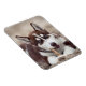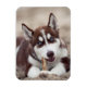Sibirischer Husky Welpe braun und weiß mit blauen Augen fressen Stock Holz am Strand.
