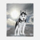 Diese hübsche, kuschelige Fleecedecke zeigt mein zeichn eines mit Augen Sibirienhuskys in Schwarz und Weiß, vor sibirischem Hintergrund und Winterhimmel. Ein wunderbares Geschenk für einen Husky-Liebhaber, unter dem man sich schnauzen kann.