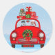 Sibirischer Husky-Hund in Auto mit dem Weihnachtsm Runder Aufkleber
