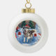Sibirischer Husky läuft im Schnee mit Weihnachtsmü Keramik Kugel-Ornament