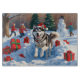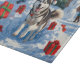 Sibirischer Husky läuft im Schnee mit Weihnachtsmü Schneidebrett