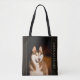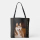Liebhaber des sibirischen Huskieses genießen diese Tasche diese Tasche, die ein Porträt eines schönen roten heiseren Welpen kennzeichnet. Personifizieren Sie den Text mit Ihrem Namen oder den Namen Ihr Hundes. Fotografie durch award-winning Designer- und Tierphotographen, Diana Andersen.