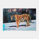 Ein leicht stilisiertes Bild eines sibirischen Tigers (Panthera tigris tigris tigris) in einer schneebedeckten Landschaft an einer mondbeleuchteten Winternacht. Fügen Sie Ihren eigenen Text hinzu. Der sibirische Tiger, auch Amur Tiger oder Ussuri Tiger genannt, wird in Teilen Russlands und der China gefunden. In Nordkorea gibt es vielleicht noch ein paar.