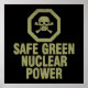 Der Slogan "Sicherer grüner Nuklearer Power", geschrieben in einem originellen, kühnen Schriftart mit bedrücktem Schlagzeilen zusammen mit einem gleichermaßen bedrückten Giftsymbol. Du kannst keine Ironie töten.