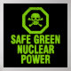 Der Slogan "Sicherer grüner Nuklearer Power", geschrieben in einem originellen, kühnen Schriftart mit bedrücktem Schlagzeilen zusammen mit einem gleichermaßen bedrückten Giftsymbol. Du kannst keine Ironie töten.